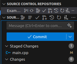 코드를 수정하면 변경된 파일이 다음과 같이 나오며 우측에 + ''Stage changes"를 클릭하면 해당 파일의 변경 사항을 입력할 수 있다.