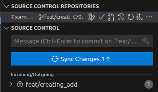 이후 Commit을 누르면 local branch에 반영이 되며, Sync Changes를 누르면 Remote branch로 업데이트가 된다.