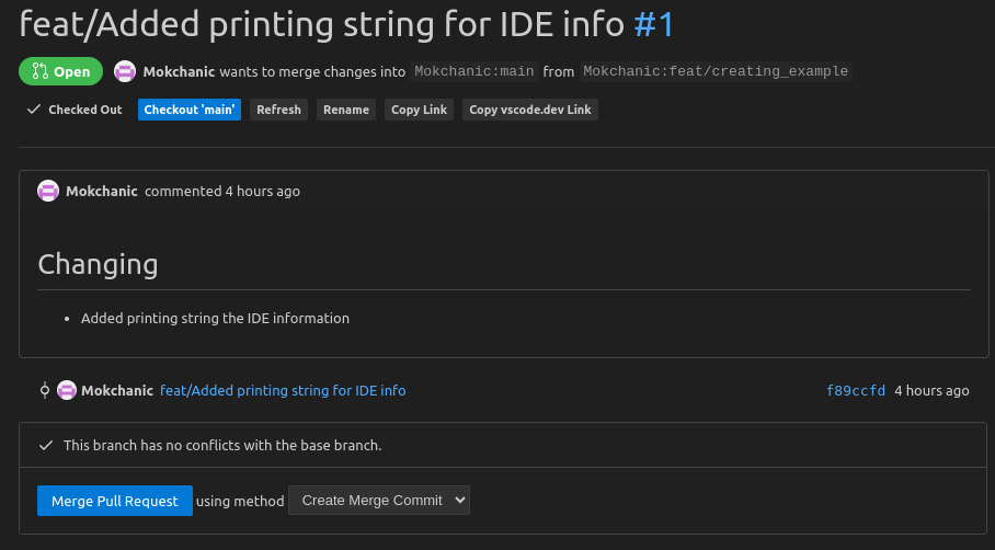 이제 모든 리뷰어가 approve를 해주면, Assignees이 이를 확인하고 Merge pull request를 누르고 Create Merge Commit을 하면 내용이 업데이트 된다.