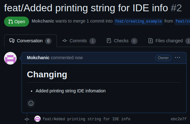 이제 만들어진 branch에서 코드를 살짝 변경하고 업로드를 해보자.