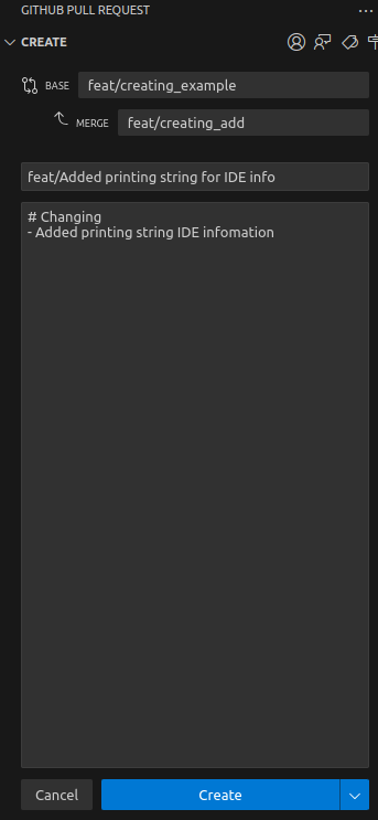 이후 Create를 눌러주면 PR이 완성된다.