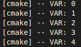 ## example for set(LIST "0" "1" "2" "3" "4") foreach(VAR IN LISTS LIST) message(STATUS "VAR: ${VAR}") endforeach()결과