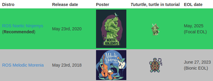 ROS1은 2020년 5월에 출시한 Neotic Ninjems를 마지막 version으로 출시하였으며 해당 version의 EOL(End of Life)은 2025년 5월이다. (EOL은 유지보수 기간이라 생각하면 된다.)