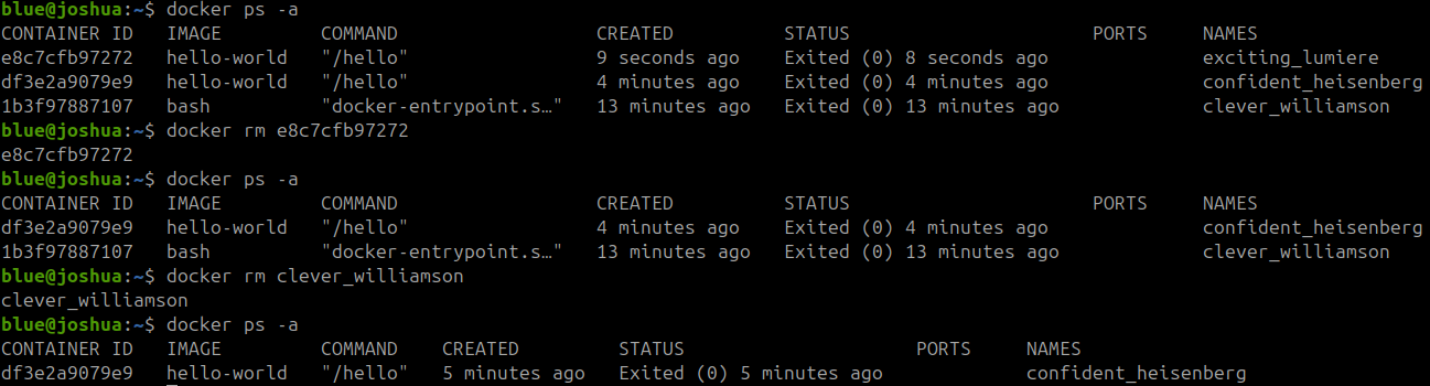 docker rm 이번에는 hello-world_1 ~ hello-world_10을 한꺼번에 지우는 명령어.