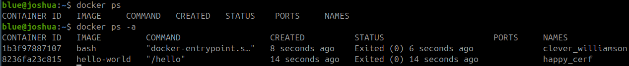 - STATUS: 명령어가 사용되고 실행된 상태. (Exited (0)은 성공)