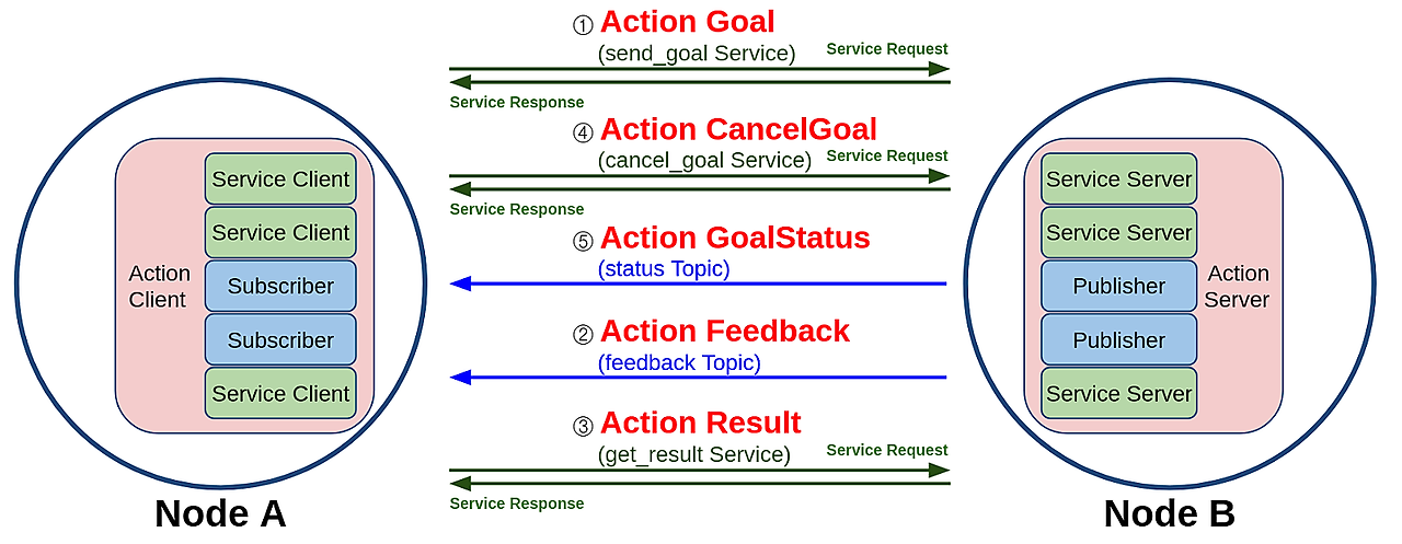 ROS2 Action 아래의 그림으로 이야기를 한다면 다음의 구성을 가지게 된다.
