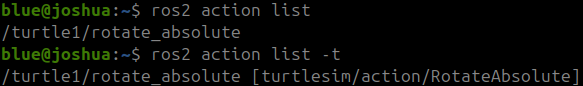 ros2 action list 명령어 ros2 action list 명령어를 사용하여 실행 중인 액션 목록을 확인 할 수 있다.