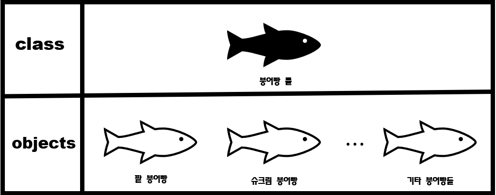 예를 들어서 우리가 붕어빵 틀을 만들어두면, 팥 붕어빵, 슈크림 붕어빵등 다양한 붕어빵을 만들 수 있다.