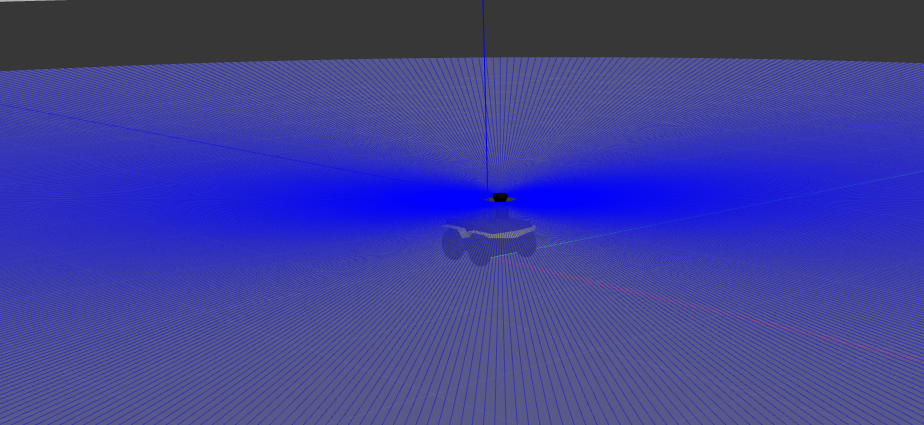 lidar_urdf.launch를 실행하고 lidar센서로 감지가 되면, 4방향으로 원뿔모양의 라이다 데이터가 나가는 것을 볼 수 있다.