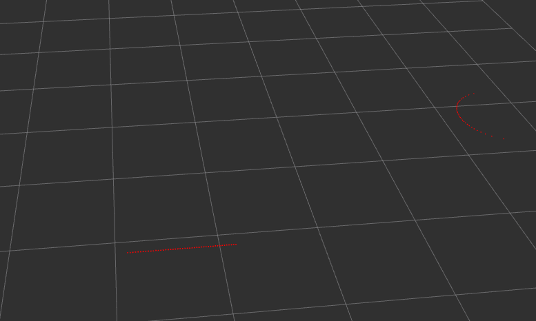 #!/usr/bin/env python import serial, time, rospy from sensor_msgs.msg import Range from std_msgs.msg import Header rospy.init_node('lidar_range') pub1 = rospy.Publisher('scan1', Range, queue_size=1) pub2 = rospy.Publisher('scan2', Range, queue_size=1) pub3 = rospy.Publisher('scan3', Range, queue_size=1) pub4 = rospy.Publisher('scan4', Range, queue_size=1) msg = Range() h = Header() h.frame_id = "sensorXY" msg.header = h msg.radiation_type = Range().ULTRASOUND msg.min_range = 0.02 msg.max_range = 2.0 msg.field_of_view = (30.0/180.0) * 3.14 while not rospy.is_shutdown(): msg.header.stamp = rospy.Time.now() msg.range = 0.4 pub1.publish(msg) msg.range = 0.8 pub1.publish(msg) msg.range = 1.2 pub1.publish(msg) msg.range = 1.6 pub1.publish(msg) time.sleep(0.2)