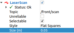 /front/scan /front/scan으로 시뮬레이션 상의 topic을 받고 있으며 해당 데이터를 rviz에 실행을 해보려고 한다.