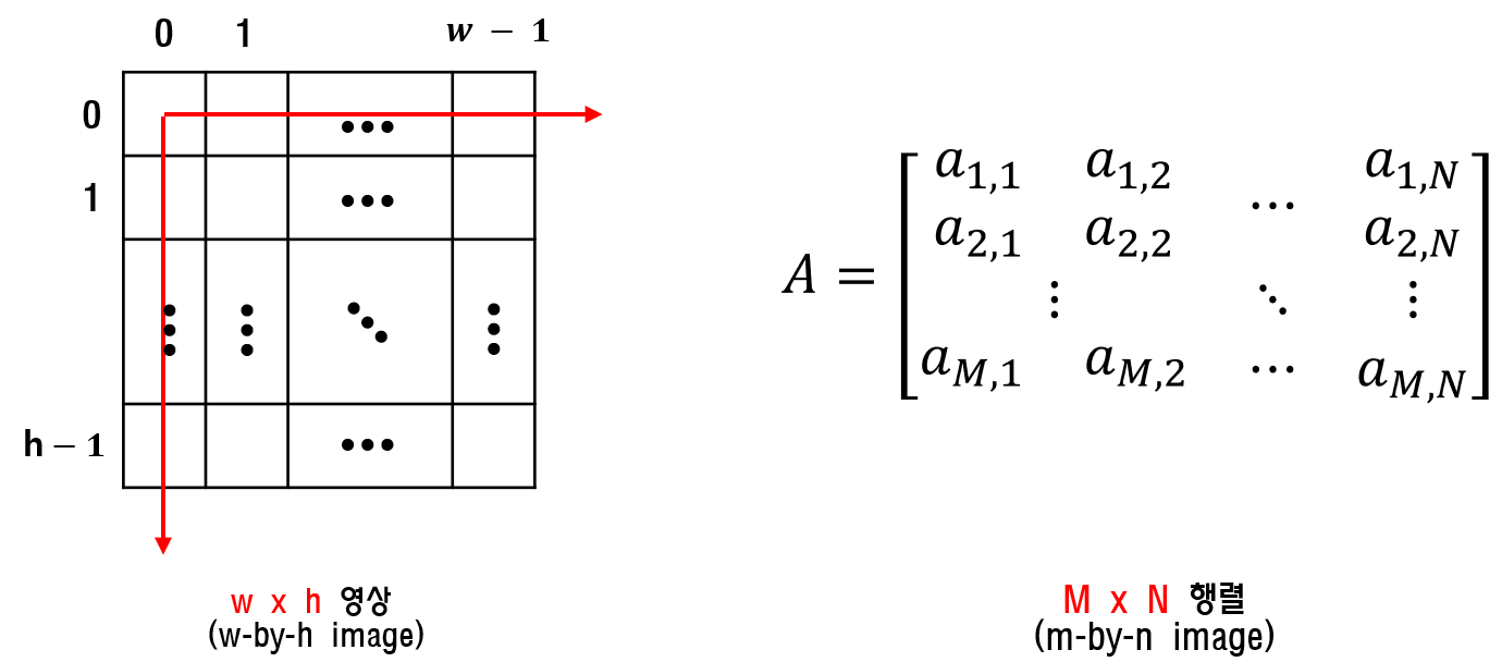 2차원 배열이 아닌 1차원 배열에 영상의 픽셀 값을 차례대로 저장하여 사용할 수 있다.