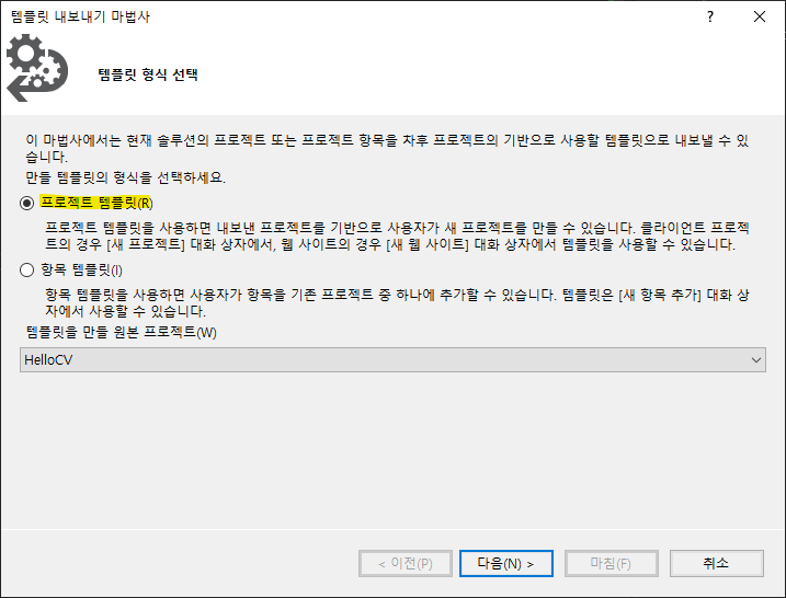 기존에 HelloCV 프로젝트를 기반으로 프로젝트 템플릿을 생성해보자.