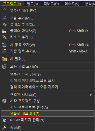 - [프로젝트] → [템플릿내보내기]