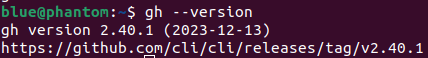 $ type -p curl >/dev/null || (sudo apt update && sudo apt install curl -y) curl -fsSL https://cli.github.com/packages/githubcli-archive-keyring.gpg | sudo dd of=/usr/share/keyrings/githubcli-archive-keyring.gpg \ && sudo chmod go+r /usr/share/keyrings/githubcli-archive-keyring.gpg \ && echo "deb [arch=$(dpkg --print-architecture) signed-by=/usr/share/keyrings/githubcli-archive-keyring.gpg] https://cli.github.com/packages stable main" | sudo tee /etc/apt/sources.list.d/github-cli.list > /dev/null \ && sudo apt update \ && sudo apt install gh -y3. 설치가 완료되었는지 확인하려면 다음 명령어 입력하여 버전 확인.