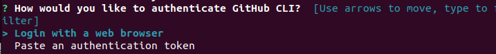 로그인을 web browser로 할지 token으로 할지 물어보는 질문.이번에는 web browser로 진행.