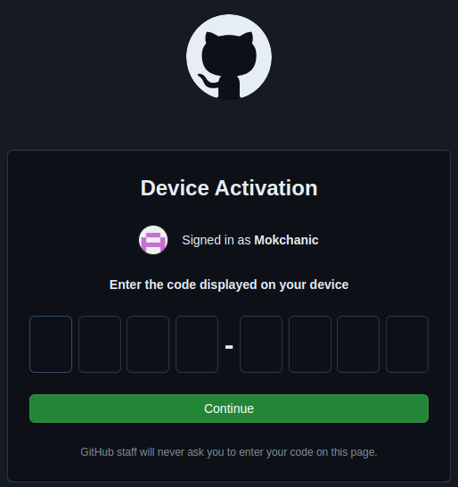 진행하면 위와 같이 code가 주어진다. 이를 가지고 로그인을 하자.해당 화면에서 Enter를 치면 browser로 이동한다.